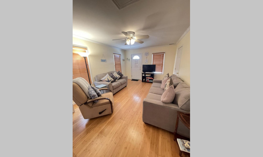 3 bedrooms, 1 full bath, 2 car parking, 4 badges, outdoor shower. Set up with high speed internet and streaming available. Located just across from beach/ boardwalk near Jenkinson's aquarium. Nice open porch lets you take in all the sights and sounds of summer at the Jersey Shore! Walk to games, rides, restaurants, boating and of course the boardwalk and beaches. 1 Queen, 1 Full, 1 Set of Bunkbeds with twin beds. Week of 6/28-7/5.....$3100 + cleaning charge.