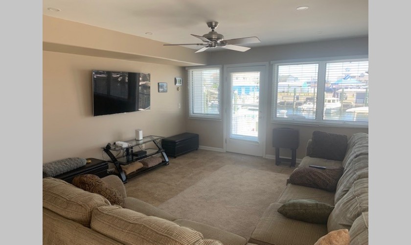 Summer 2025 $3500.00 WEEKLY + $150.00 Cleaning Fee - Beautiful lagoon front townshouse great water views of harbor. 3 Bedrooms, 2.5 Baths - 2 car parking,washer, dryer, dishwasher, 4 Color TV's, central ac, 4 beach tags, Owner Provides Pillows for all beds. - 2 short blks from beach and boardwalk.